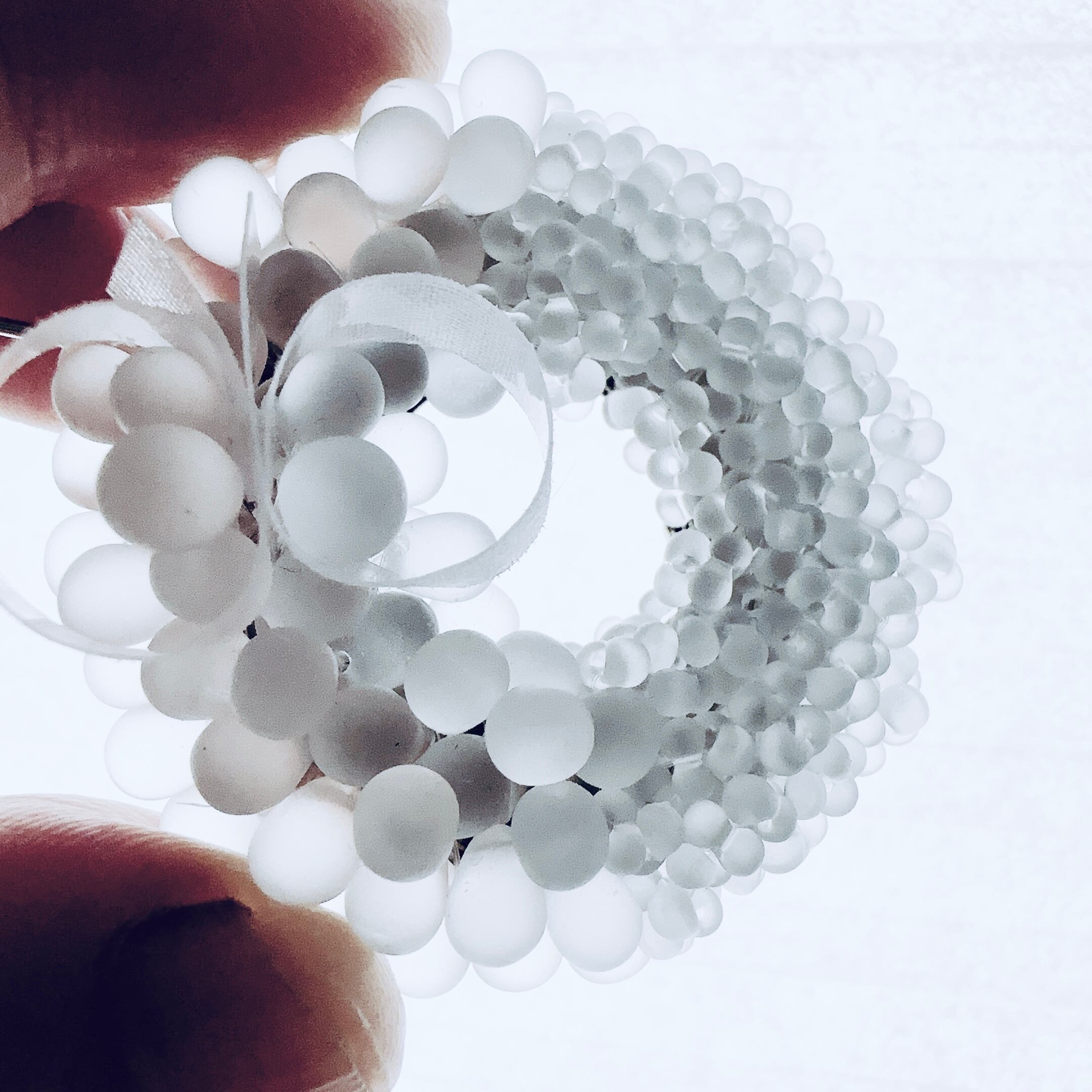 ・ガラスビーズの透明感はスタイリングにすっと馴染みます。