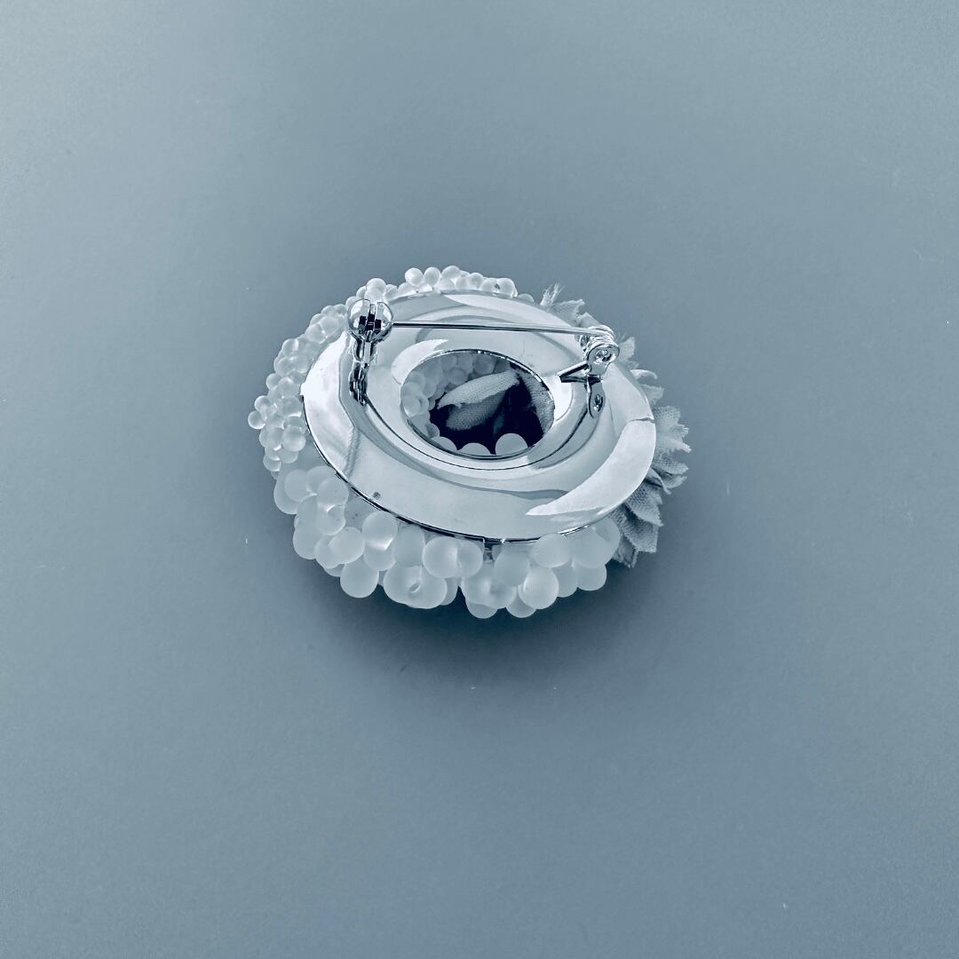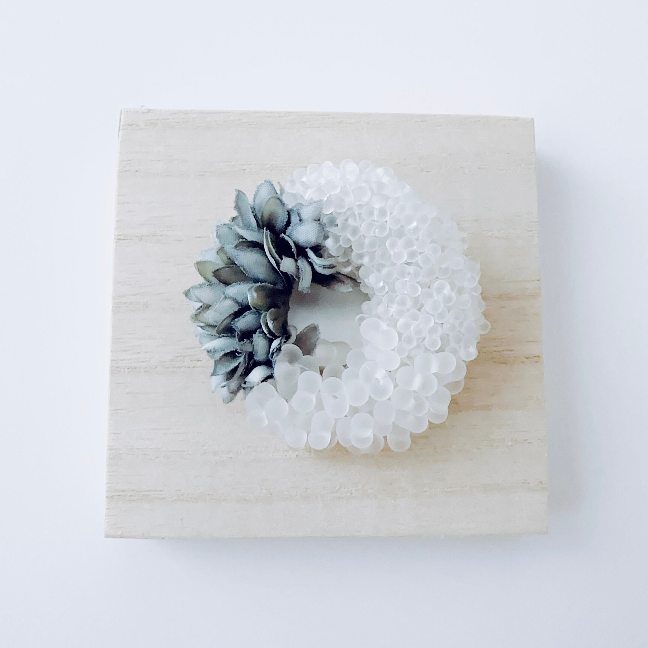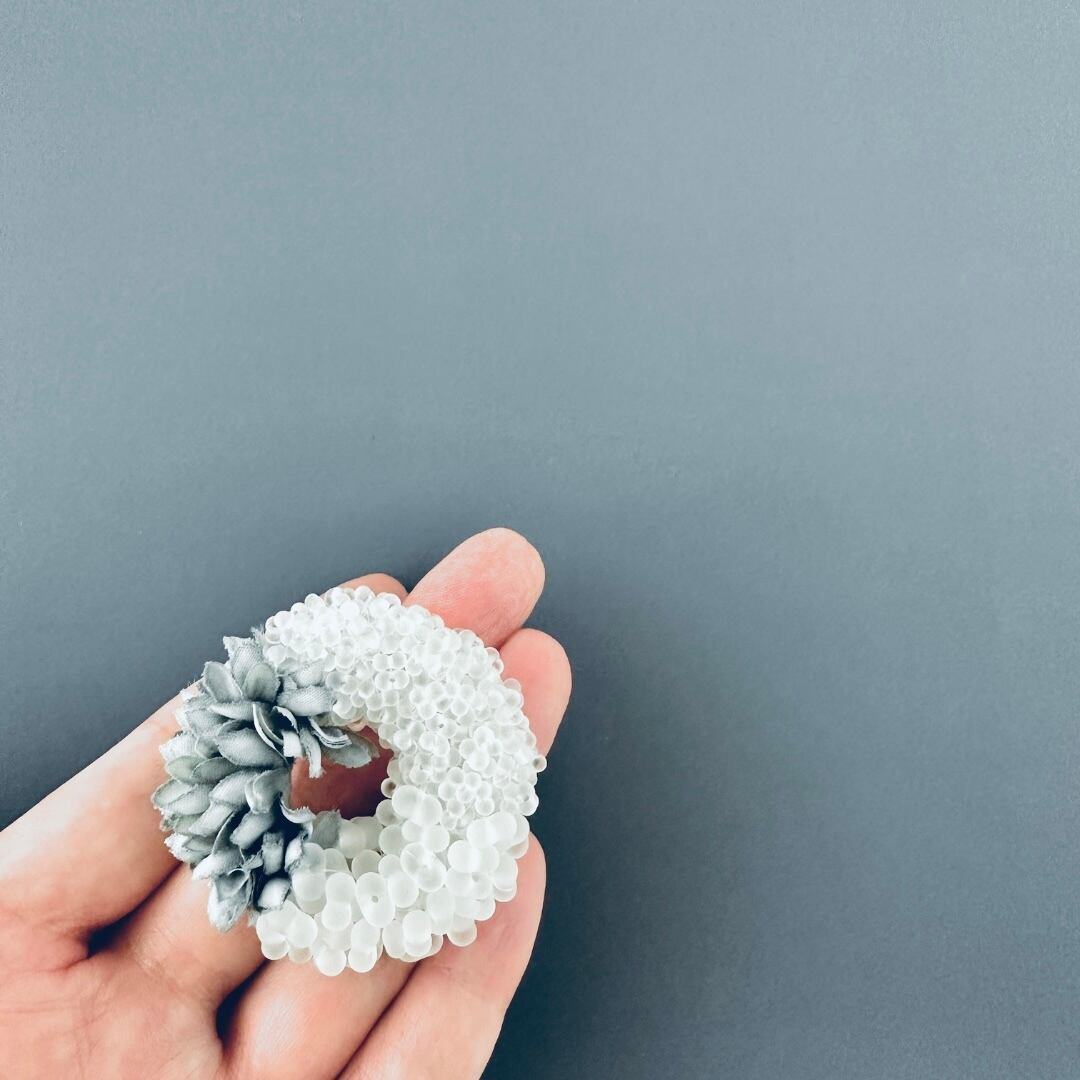 ガラスビーズ刺繍とくすみカラーお花シンプルドーナツフープブローチ【受注製作】#13