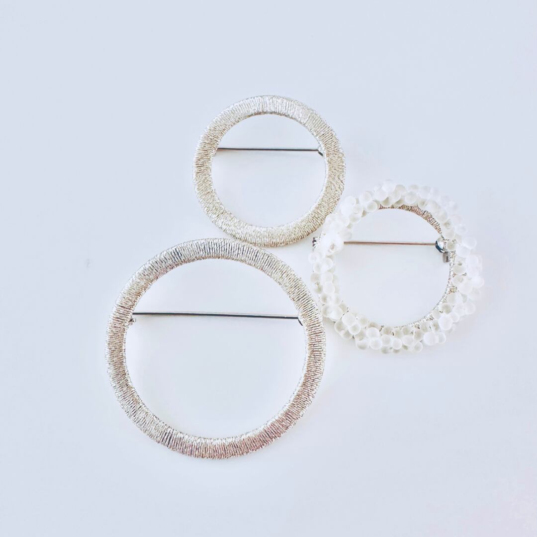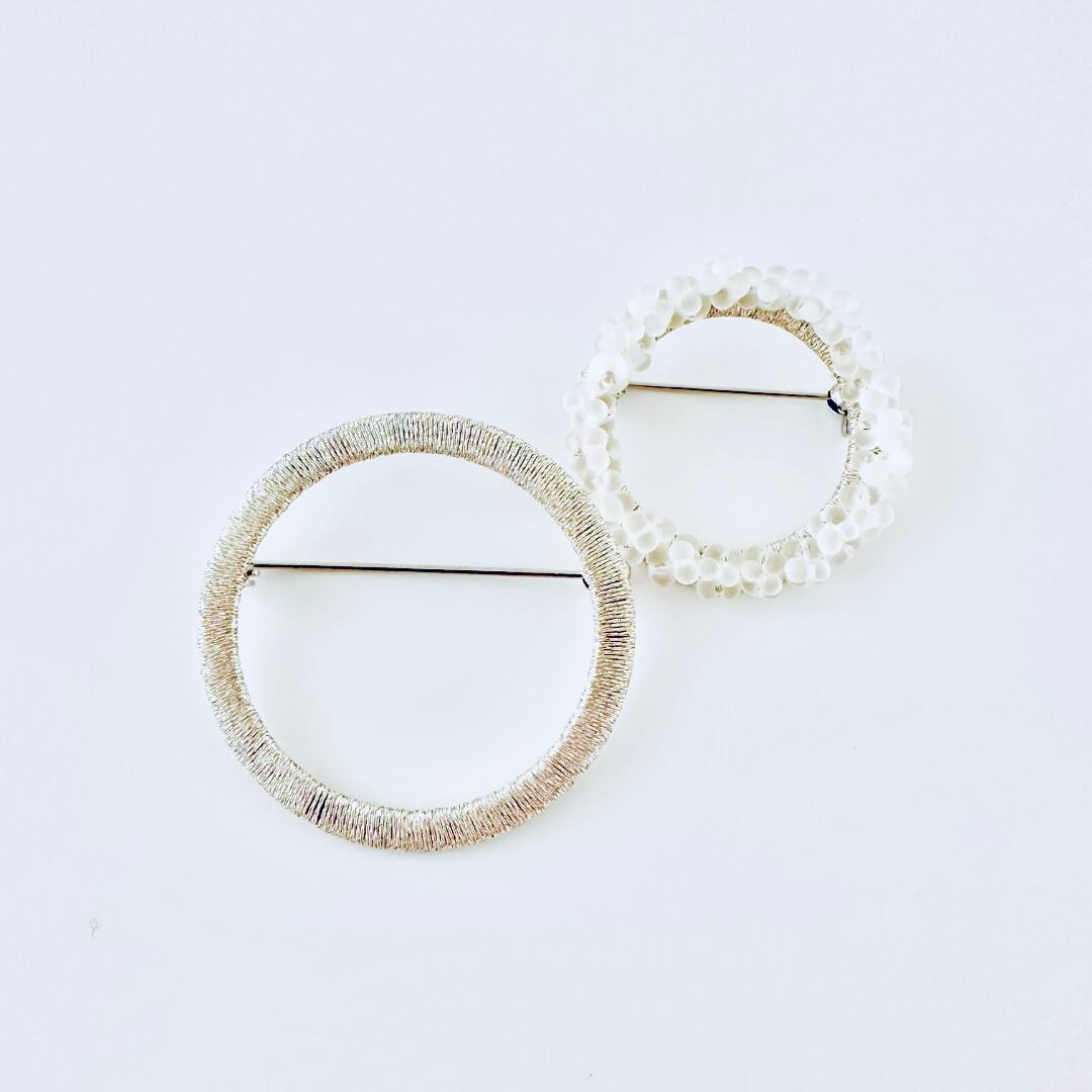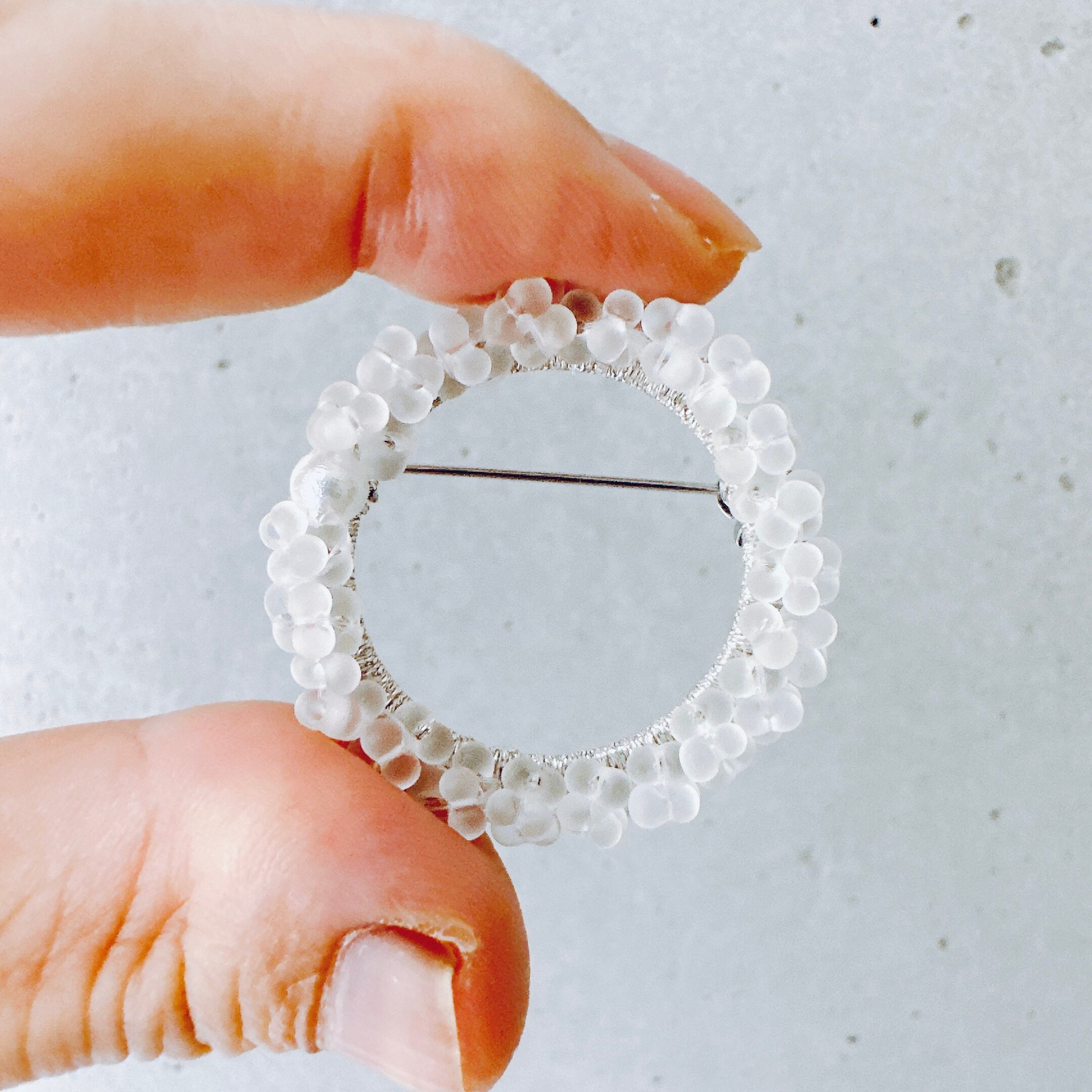 つぶつぶガラスビーズ刺繍と一粒コットンパールシンプルフープブローチ【受注製作】#2