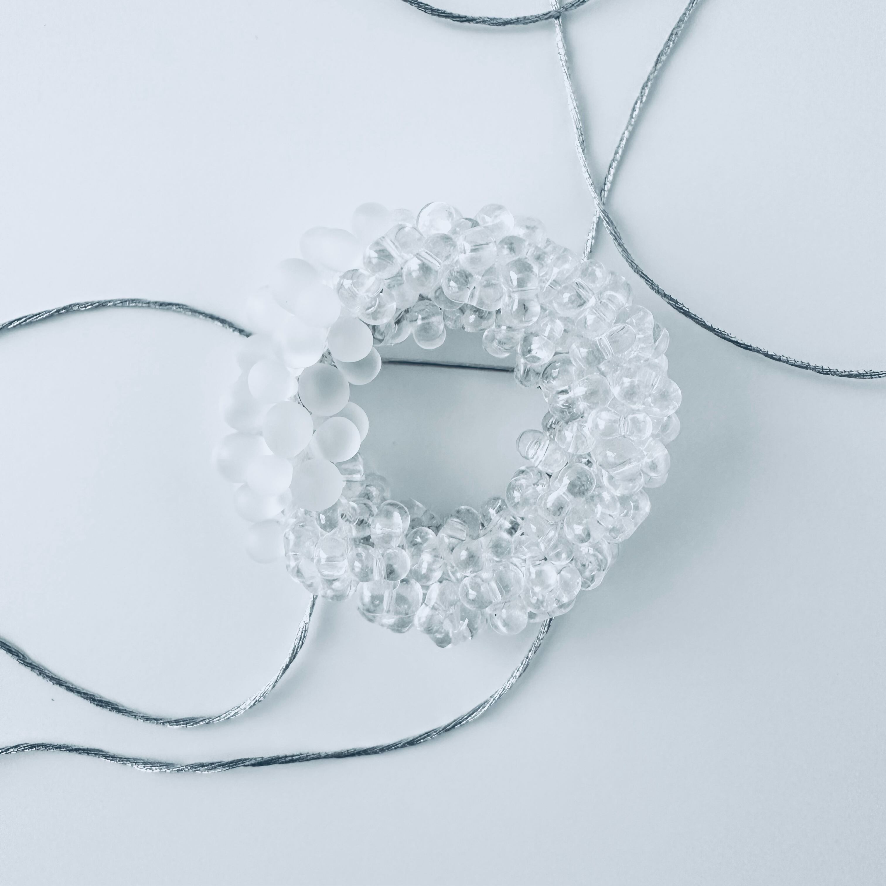 ・ガラスビーズの透明感はスタイリングにすっと馴染みます