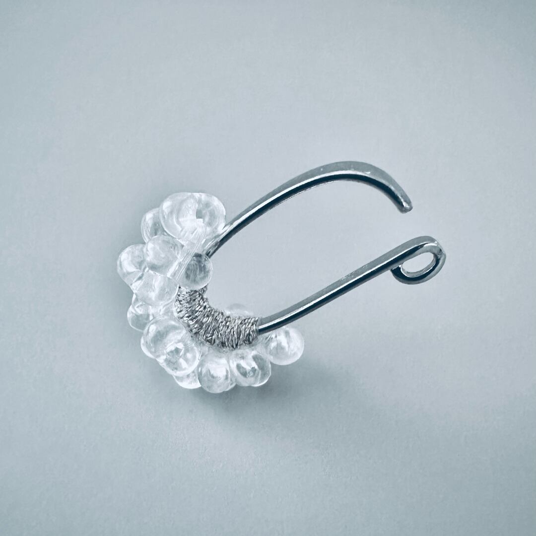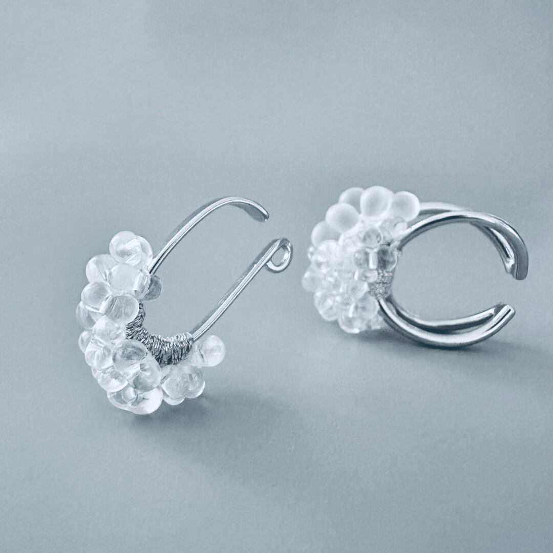 ・ガラスビーズの透明感はスタイリングにすっと馴染みます。