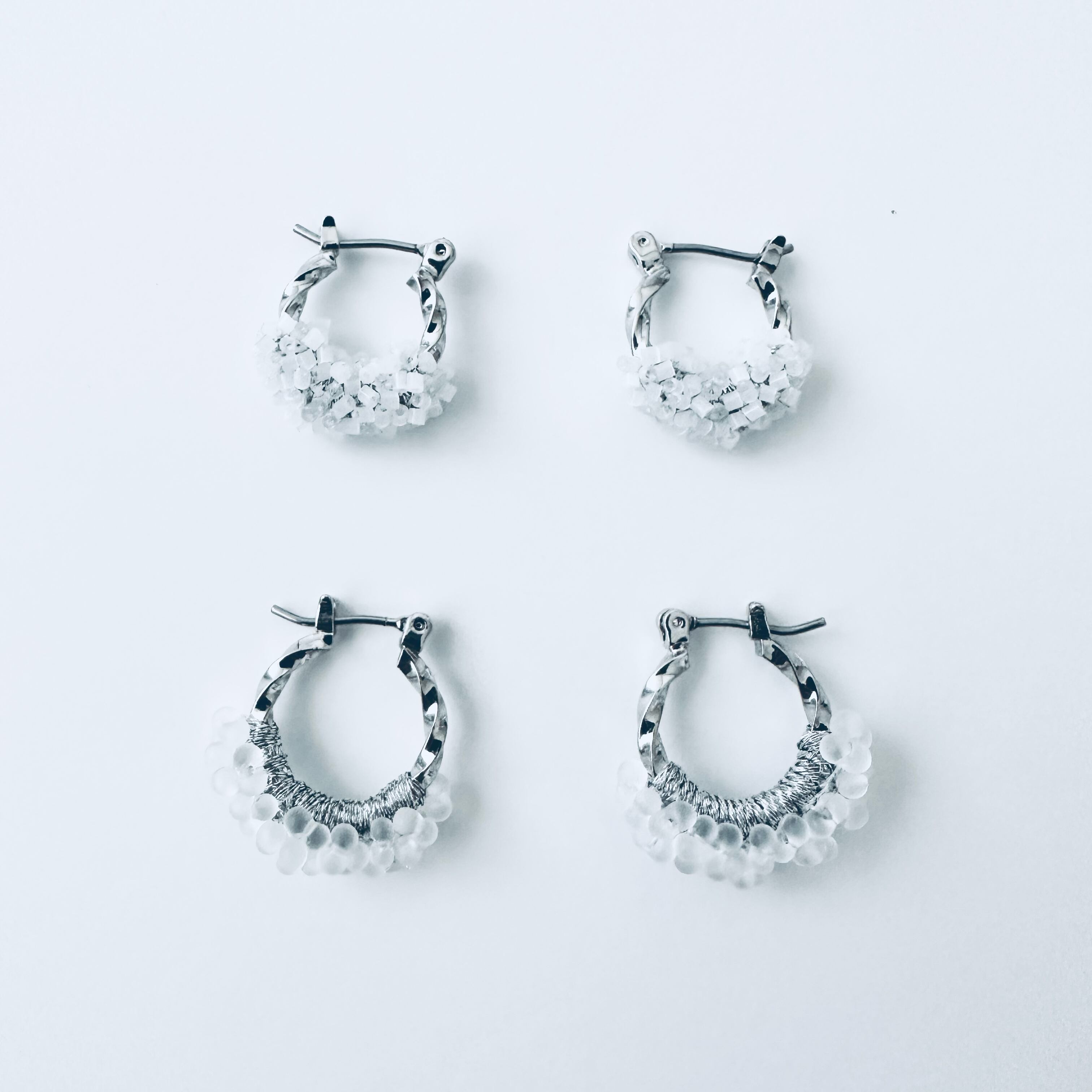 ガラスビーズ刺繍ピアス ねじりフープ スモール — ワンタッチで留まるフープ型|ミニマルハンドメイド|くく couture #32