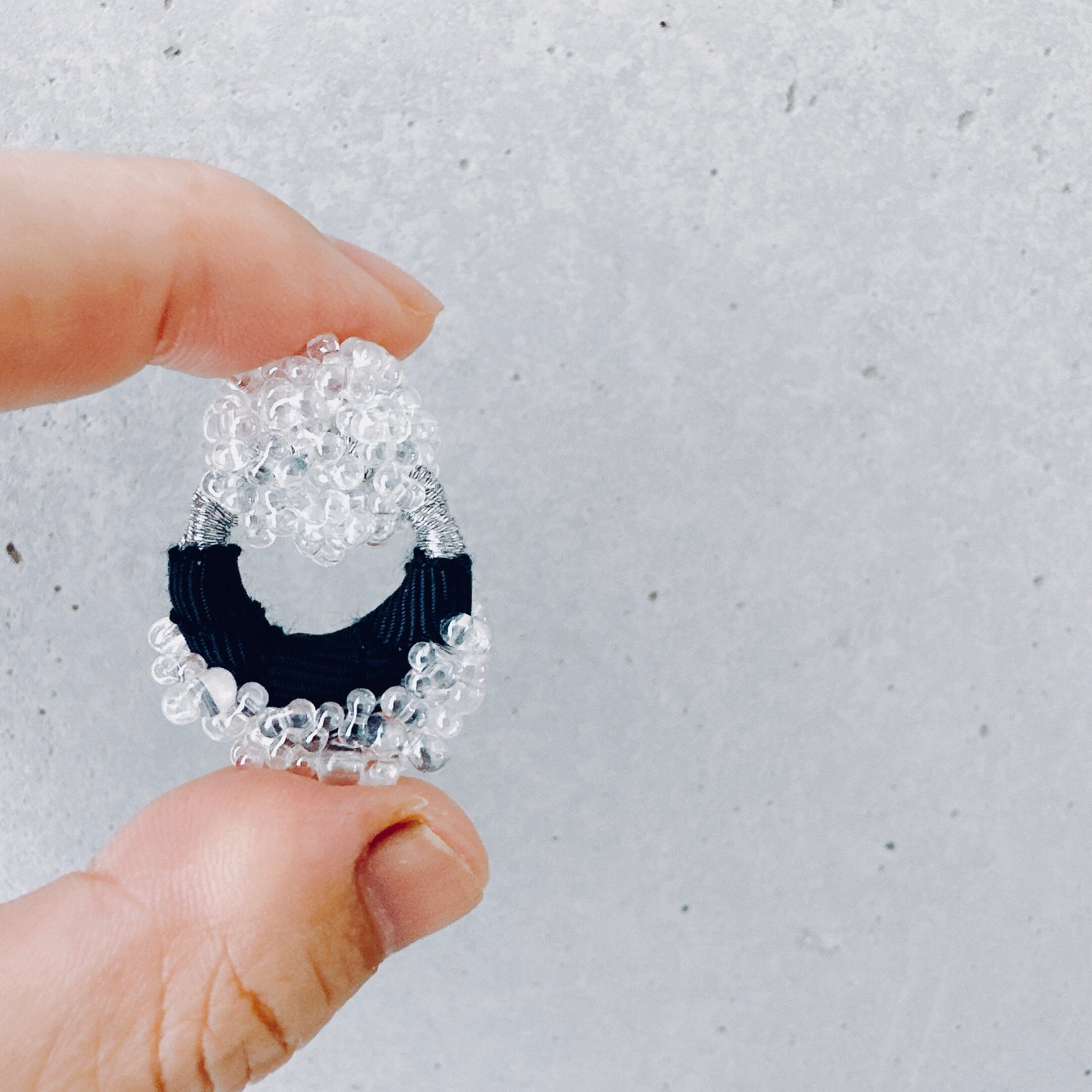 ガラスビーズ刺繍イヤリング 藍色ネイビー — 透明感の中に宿る深い藍|ミニマルハンドメイド|くく couture #35