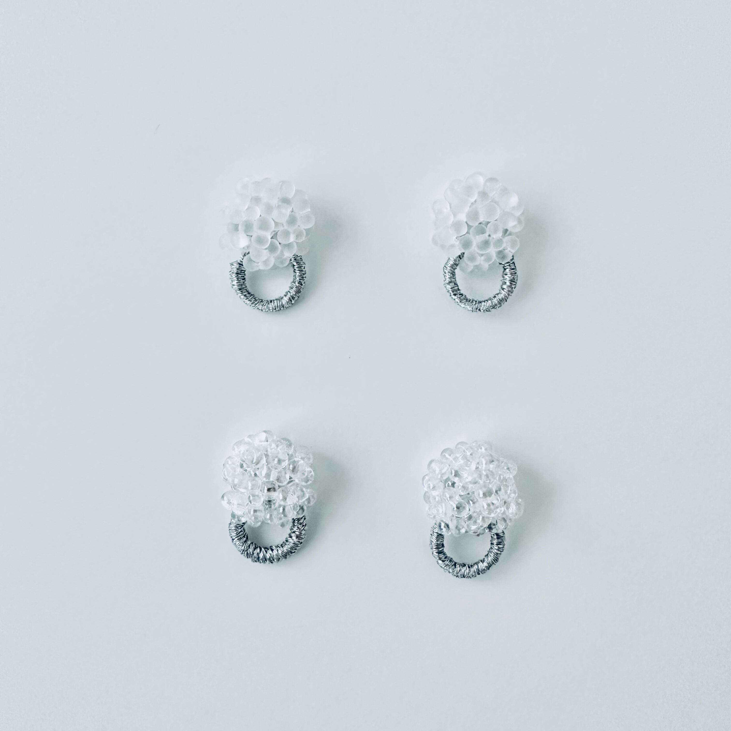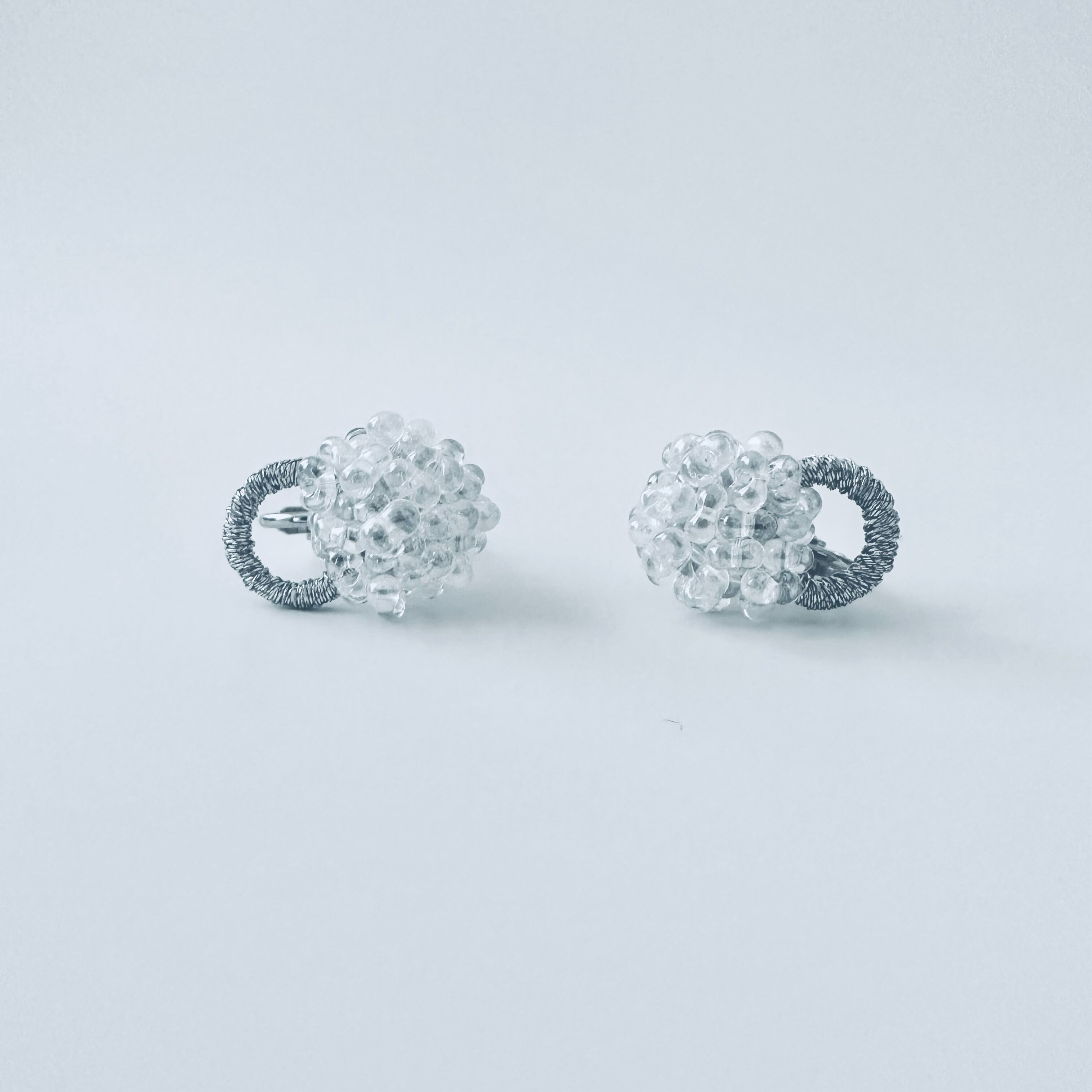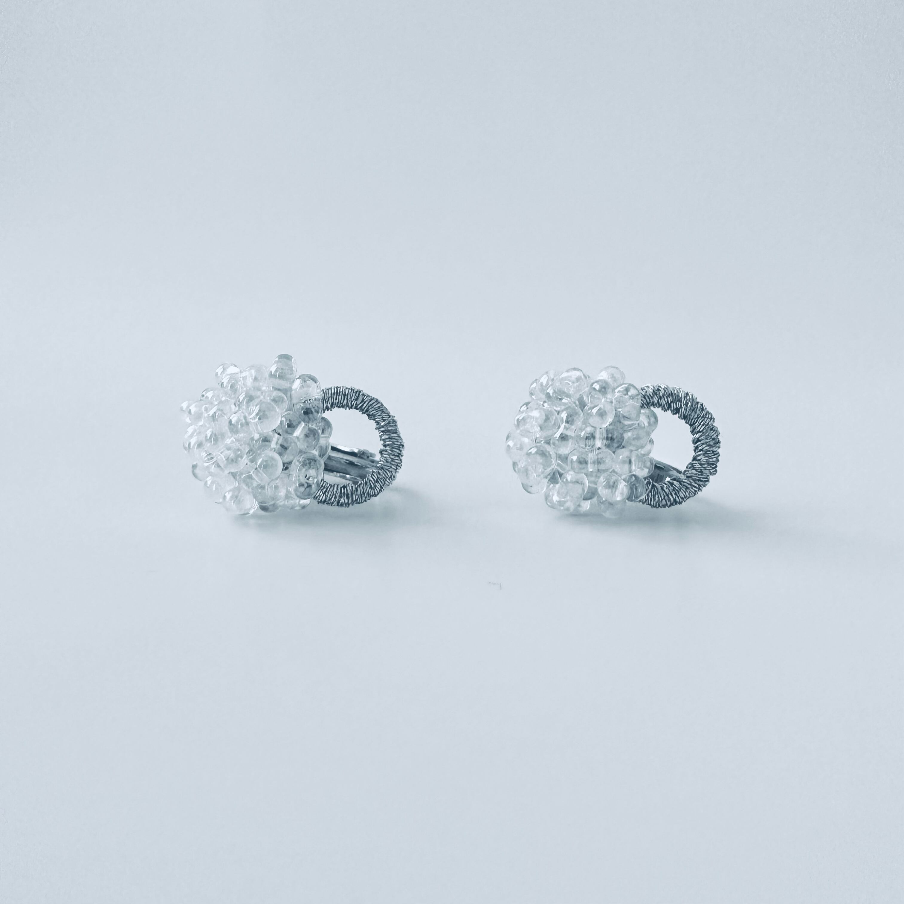 ガラスビーズ刺繍イヤリング 透明フープ — クリアな透明感のつぶつぶ|ミニマルハンドメイド|くく couture #36