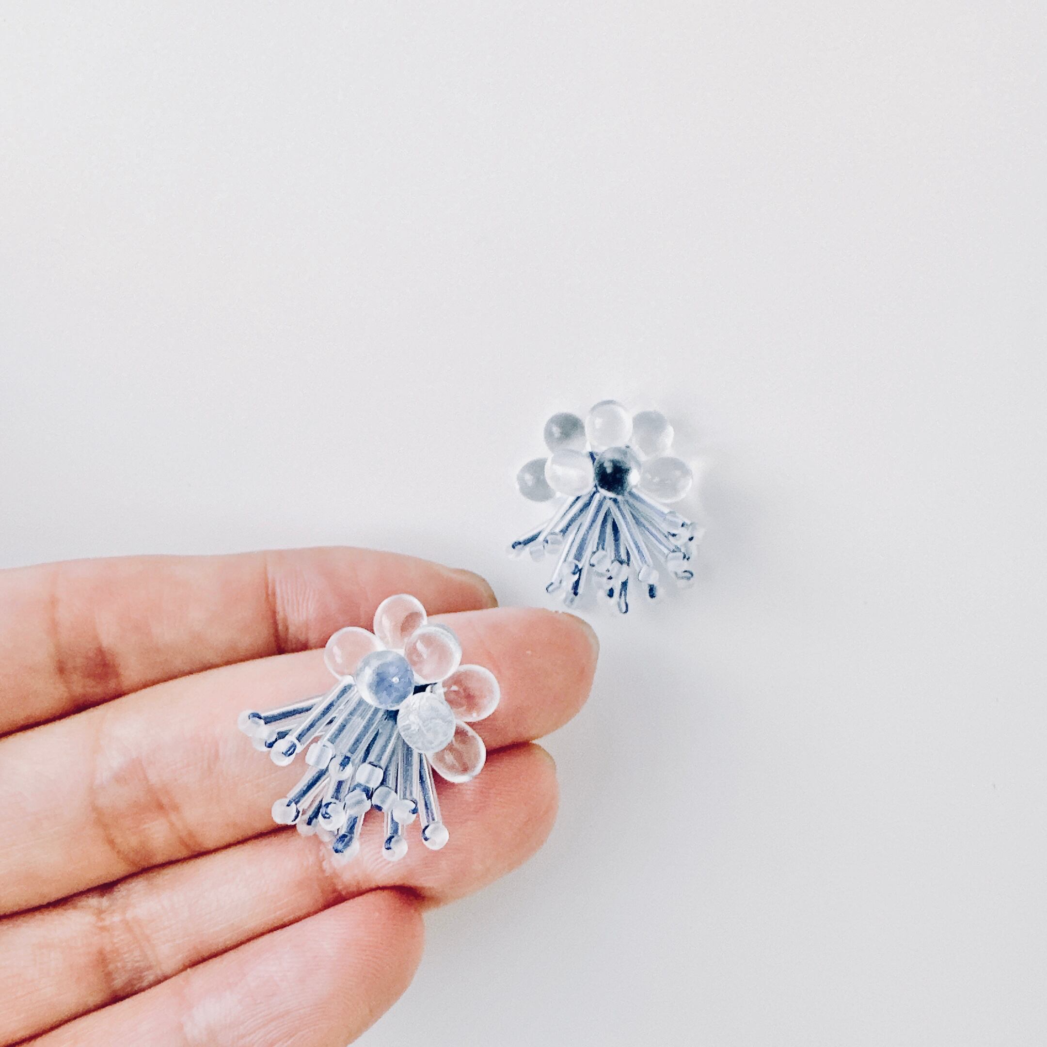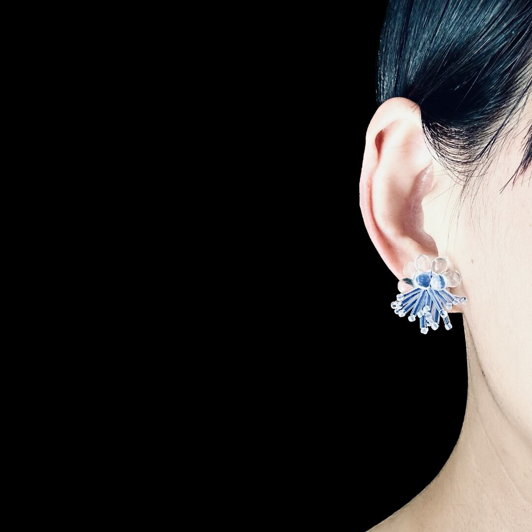 ・ガラスビーズの透明感はスタイリングにすっと馴染みます。
