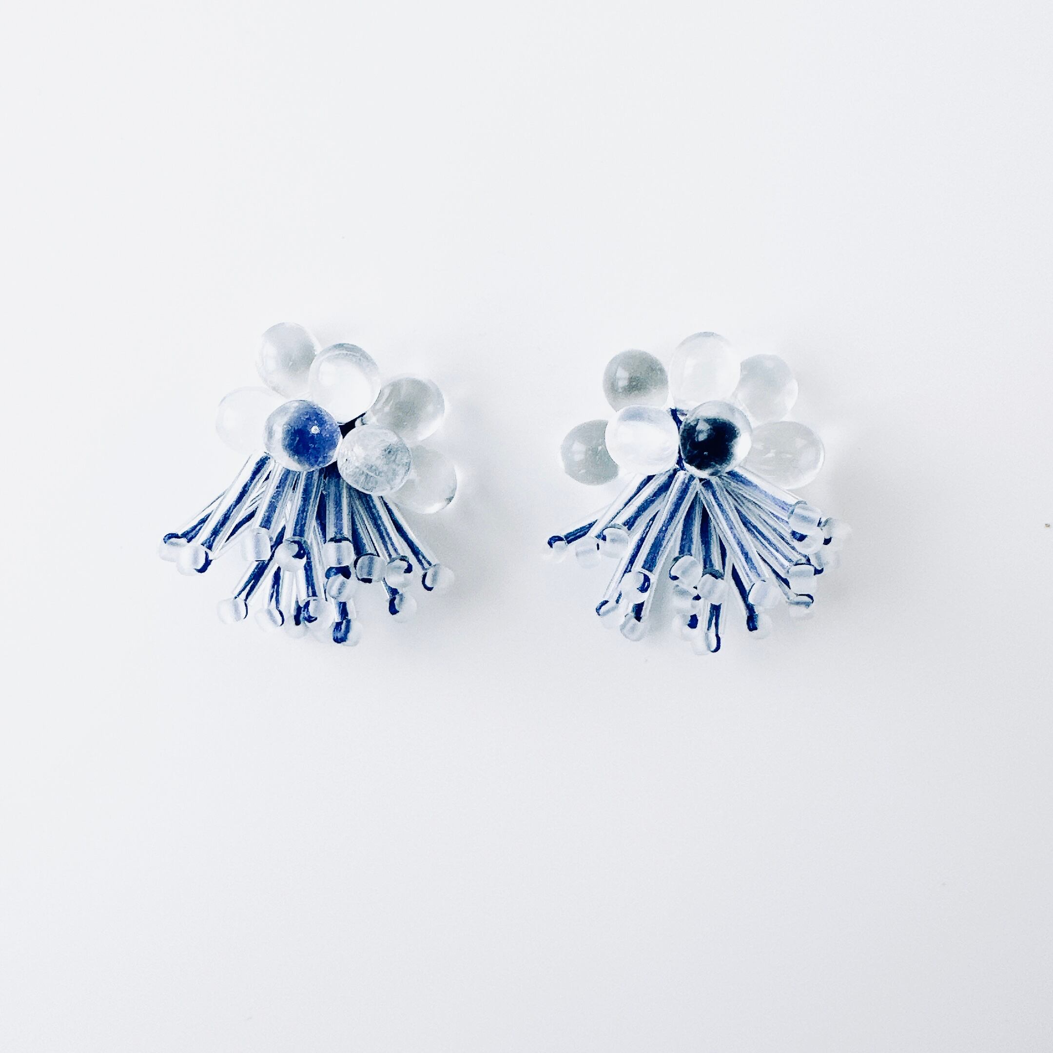 ガラスビーズ刺繍イヤリング ドット×青ストライプ — 青の清涼感が上品なデザイン|ミニマルハンドメイド|くく couture #38