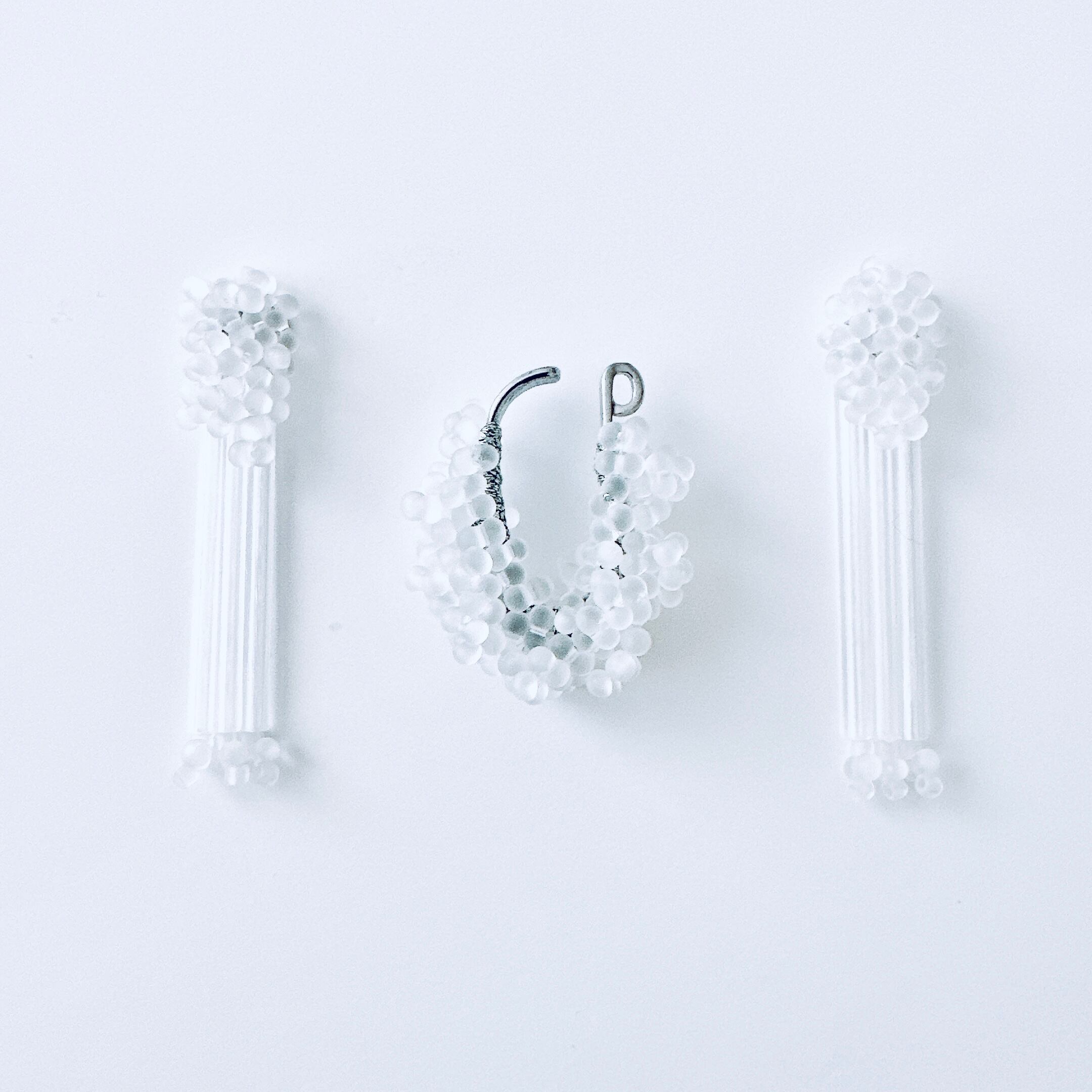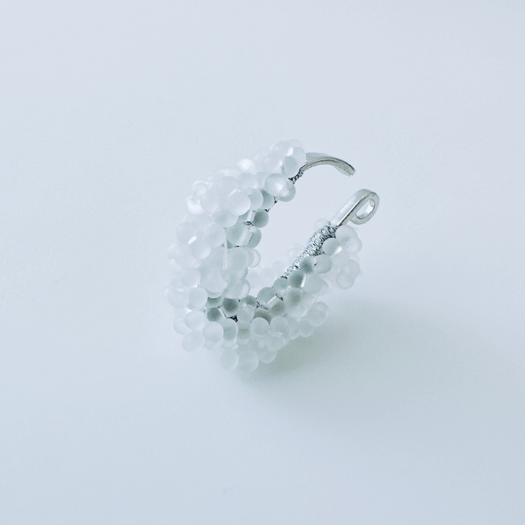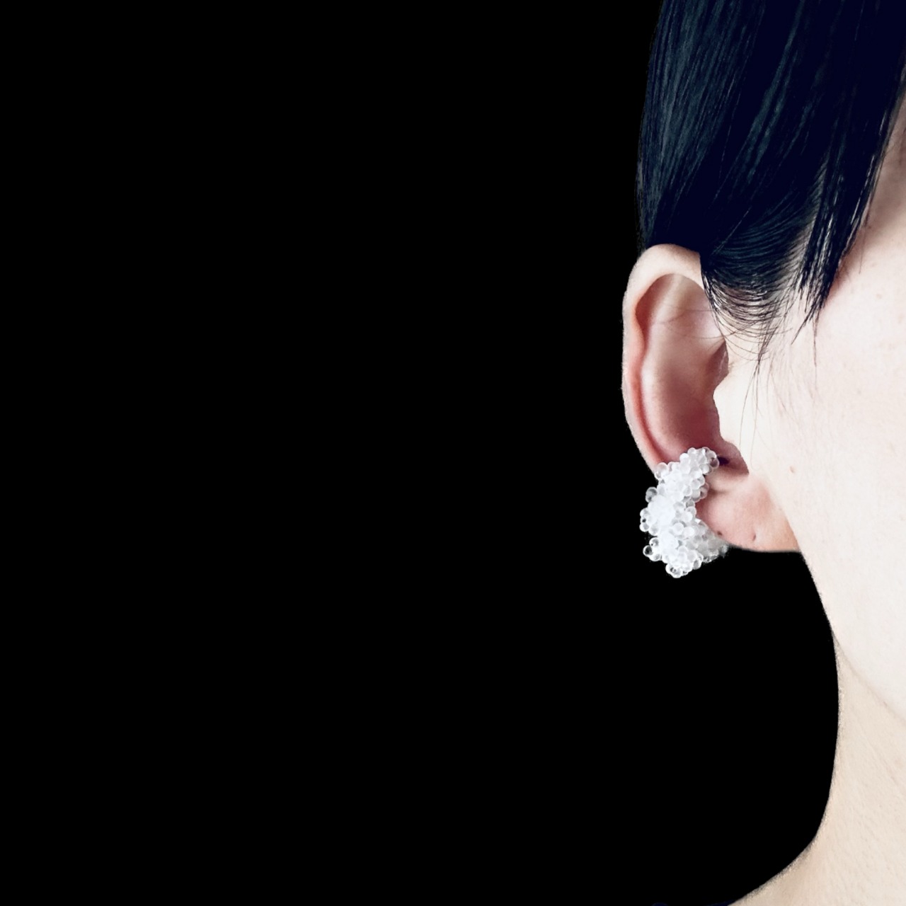 ガラスビーズ刺繍イヤーカフ 白ドット — 清潔感のある白のつぶつぶ|ミニマルハンドメイド|くく couture #41