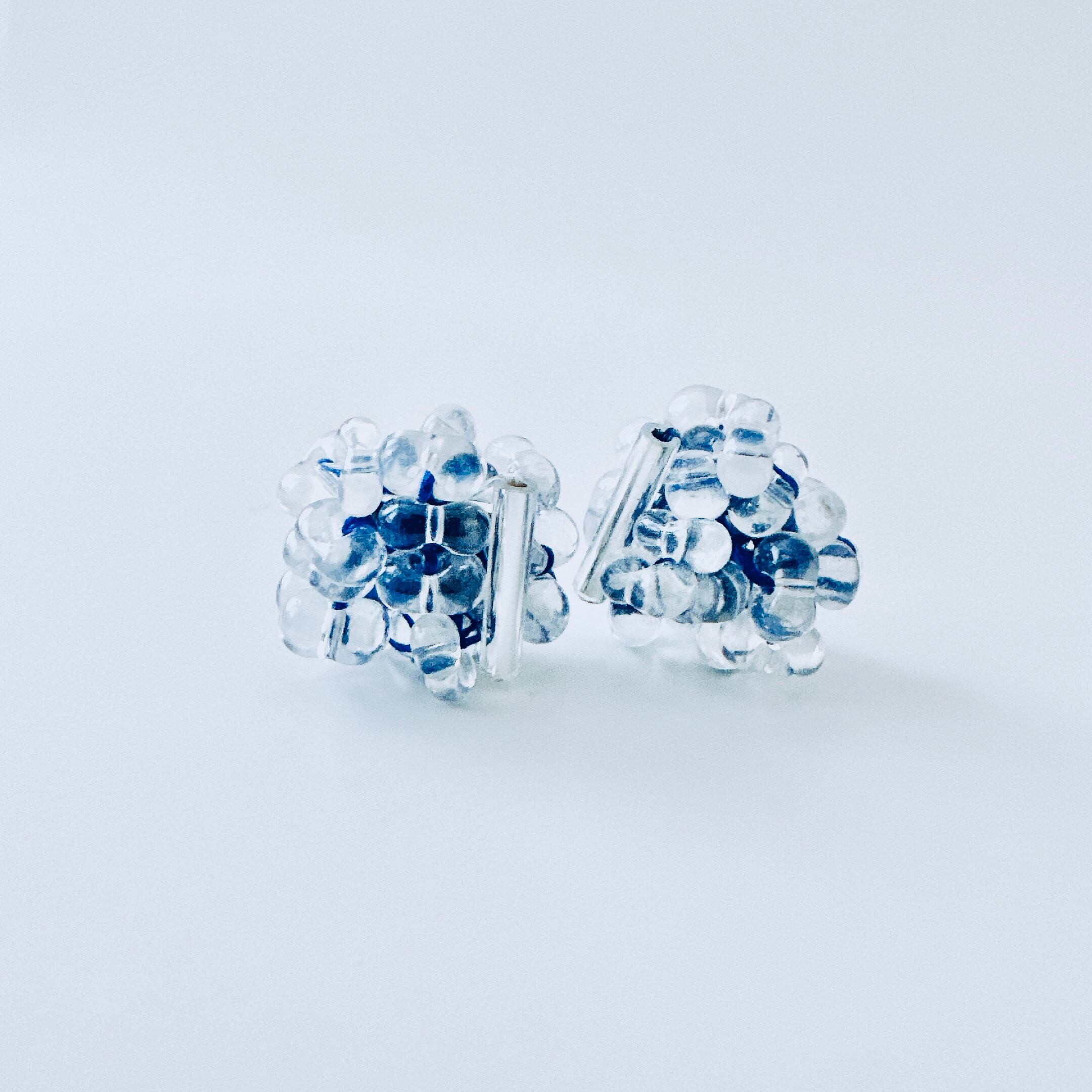 ガラスビーズ刺繍イヤリング 青ドット — 涼しげな青のつぶつぶが主役|ミニマルハンドメイド|くく couture #42