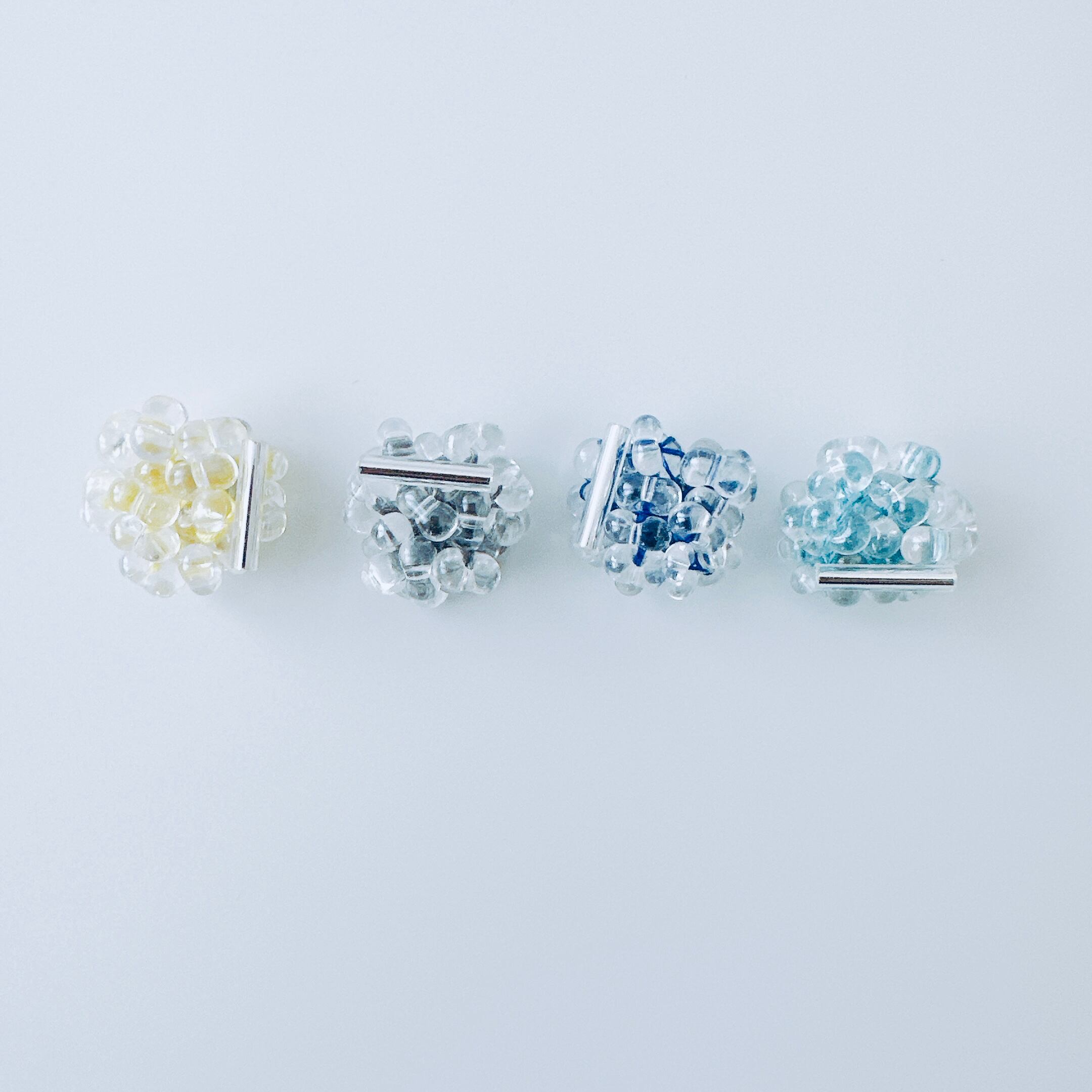 ・ガラスビーズの透明感はスタイリングにすっと馴染みます。
