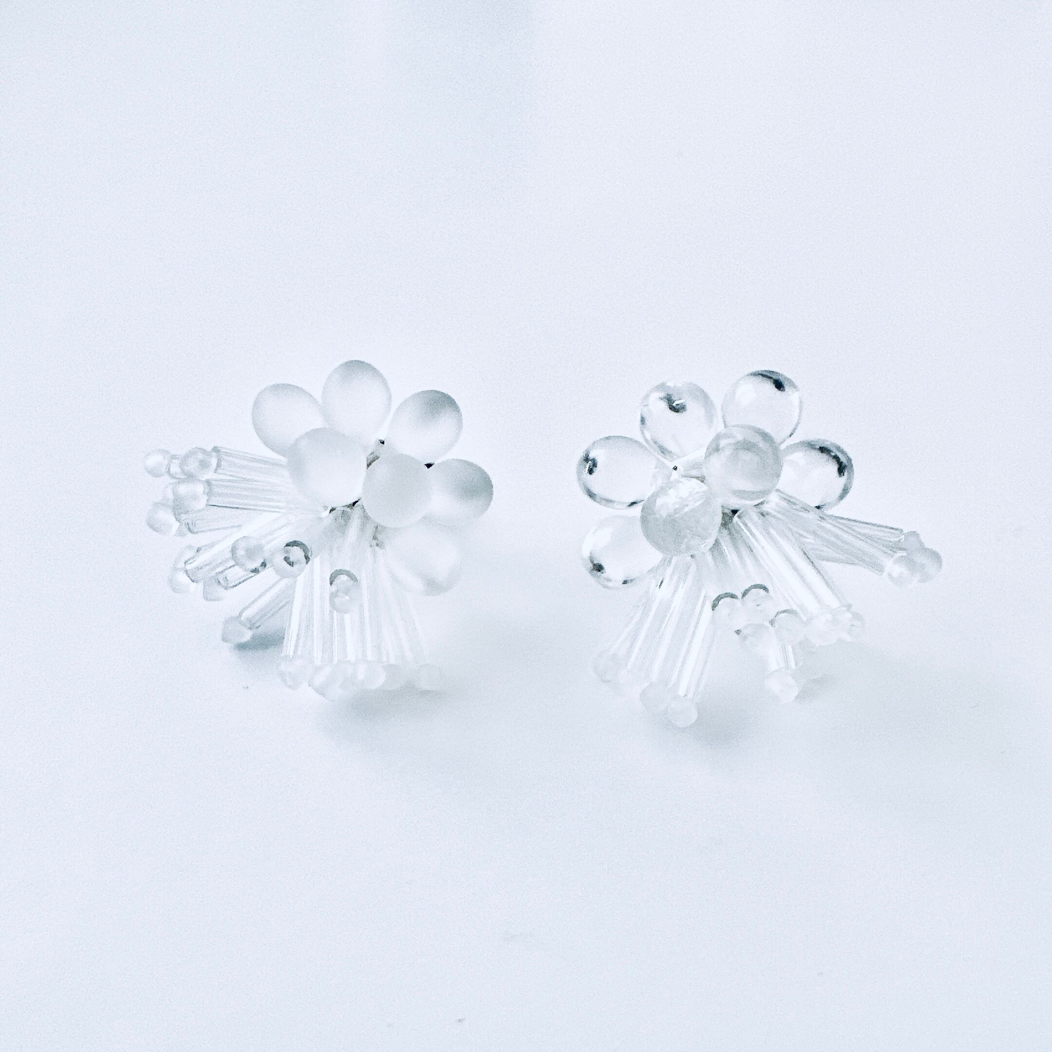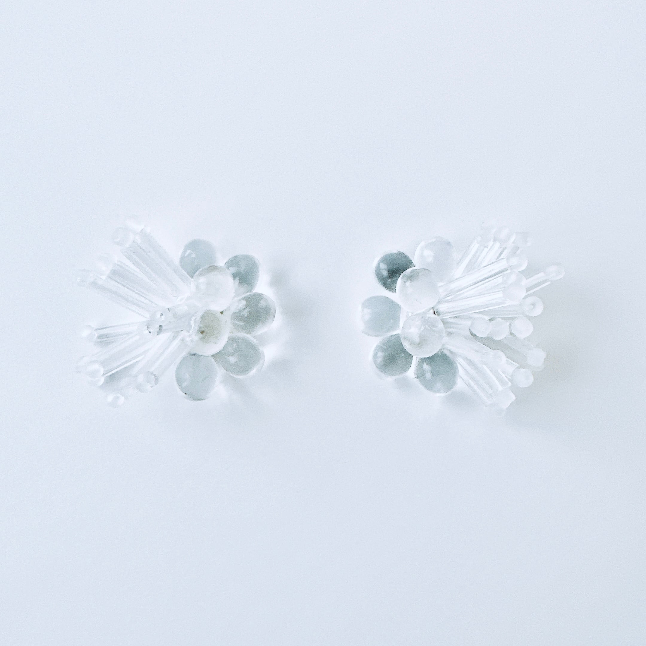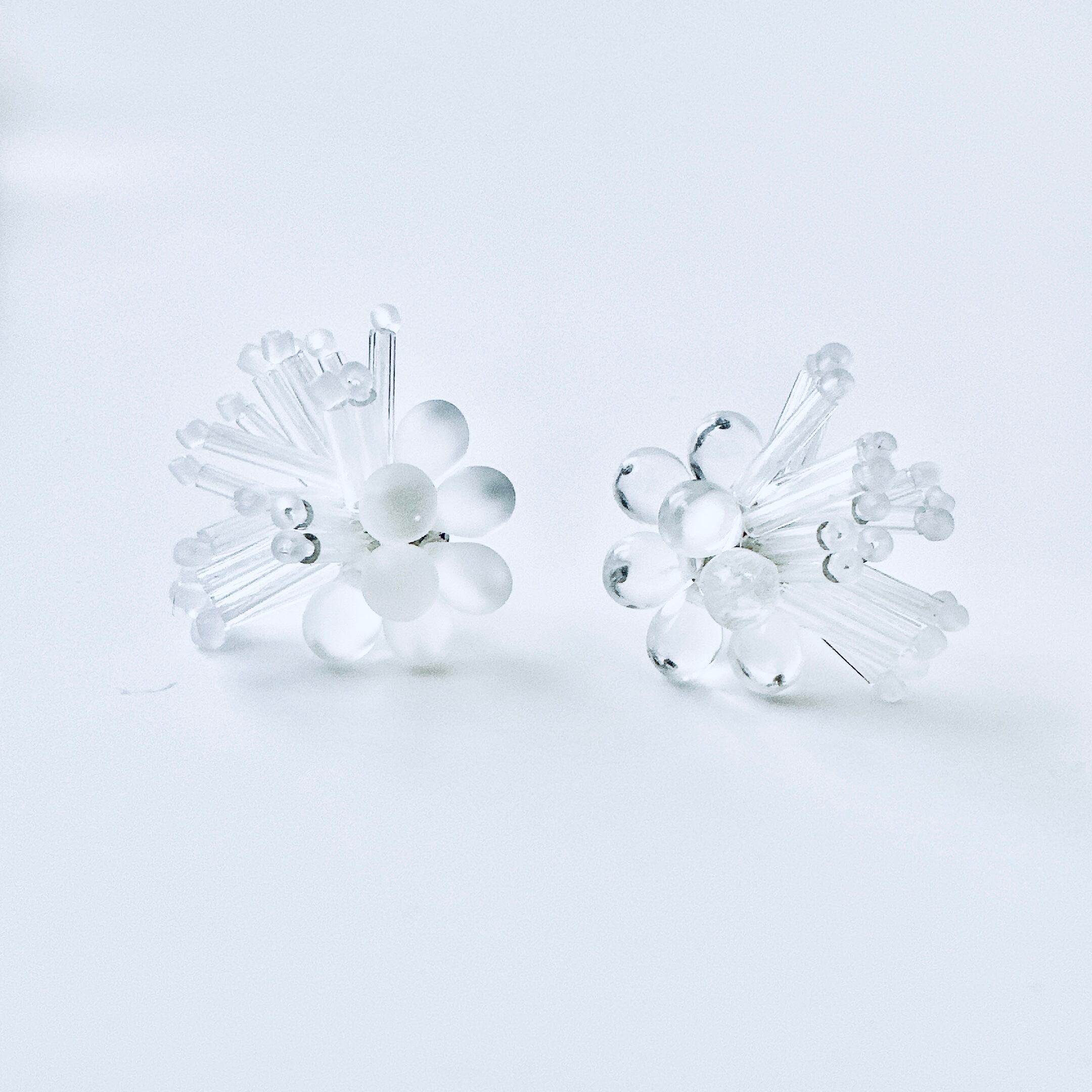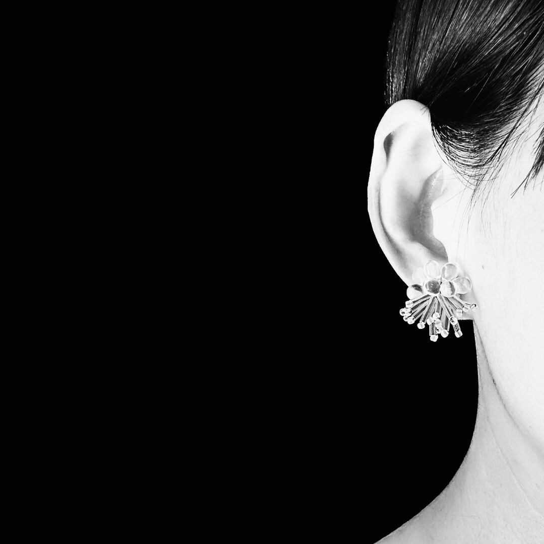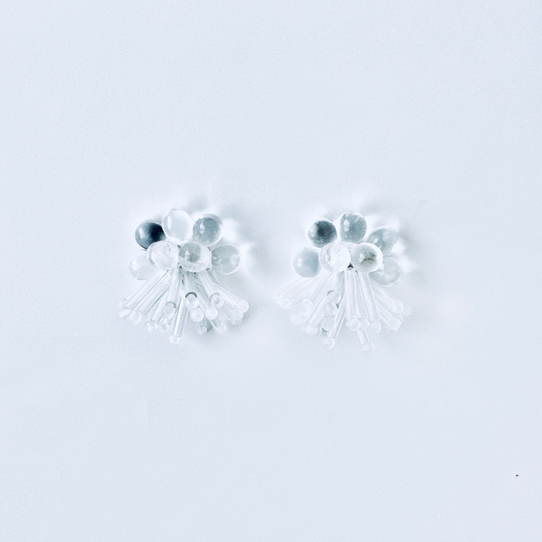 ガラスビーズ刺繍イヤリング 透明ドット×ストライプ — クリアな輝きのドット×ライン|ミニマルハンドメイド|くく couture #47