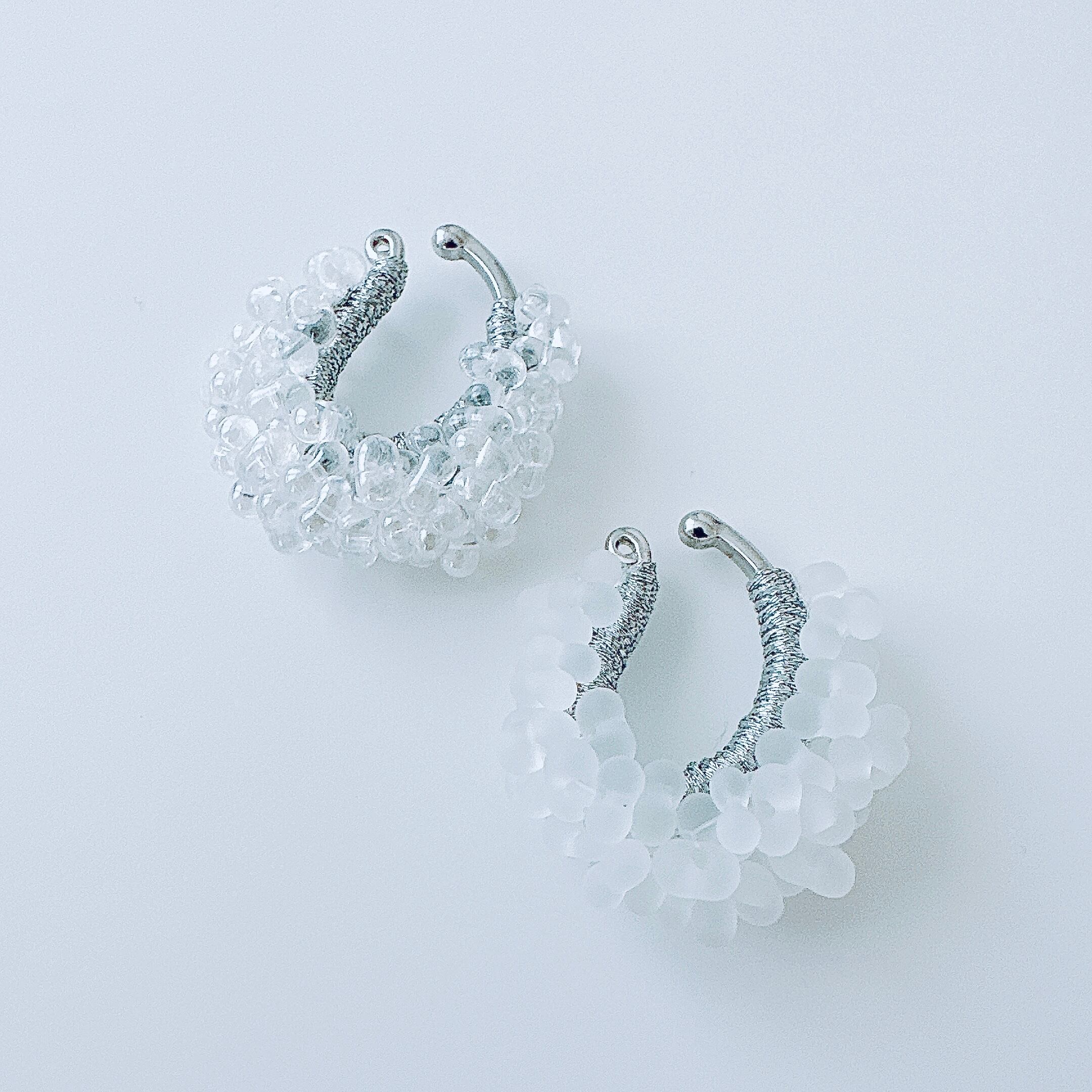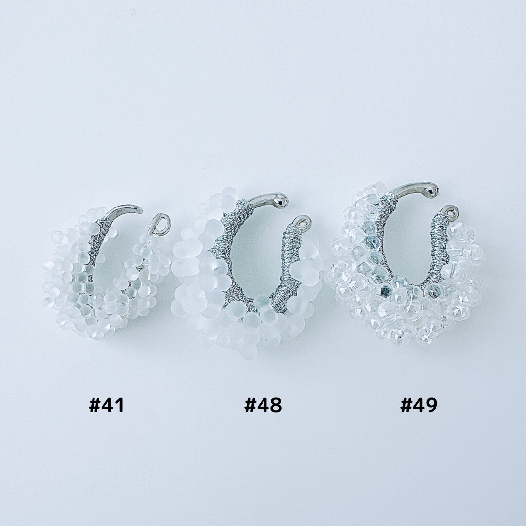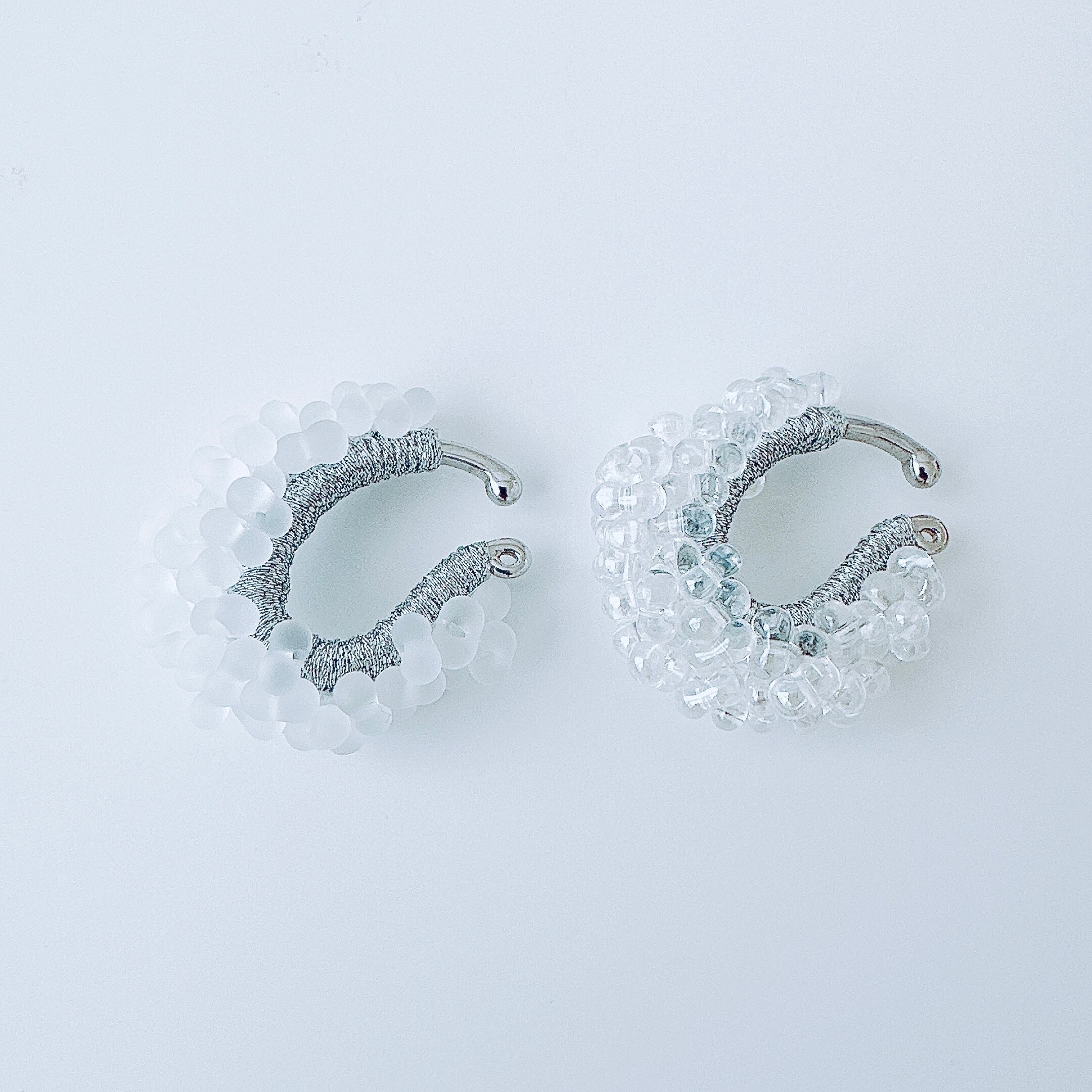 ガラスビーズ刺繍イヤーカフ 透明白ドット — クリアな透明感のつぶつぶ|ミニマルハンドメイド|くく couture #49
