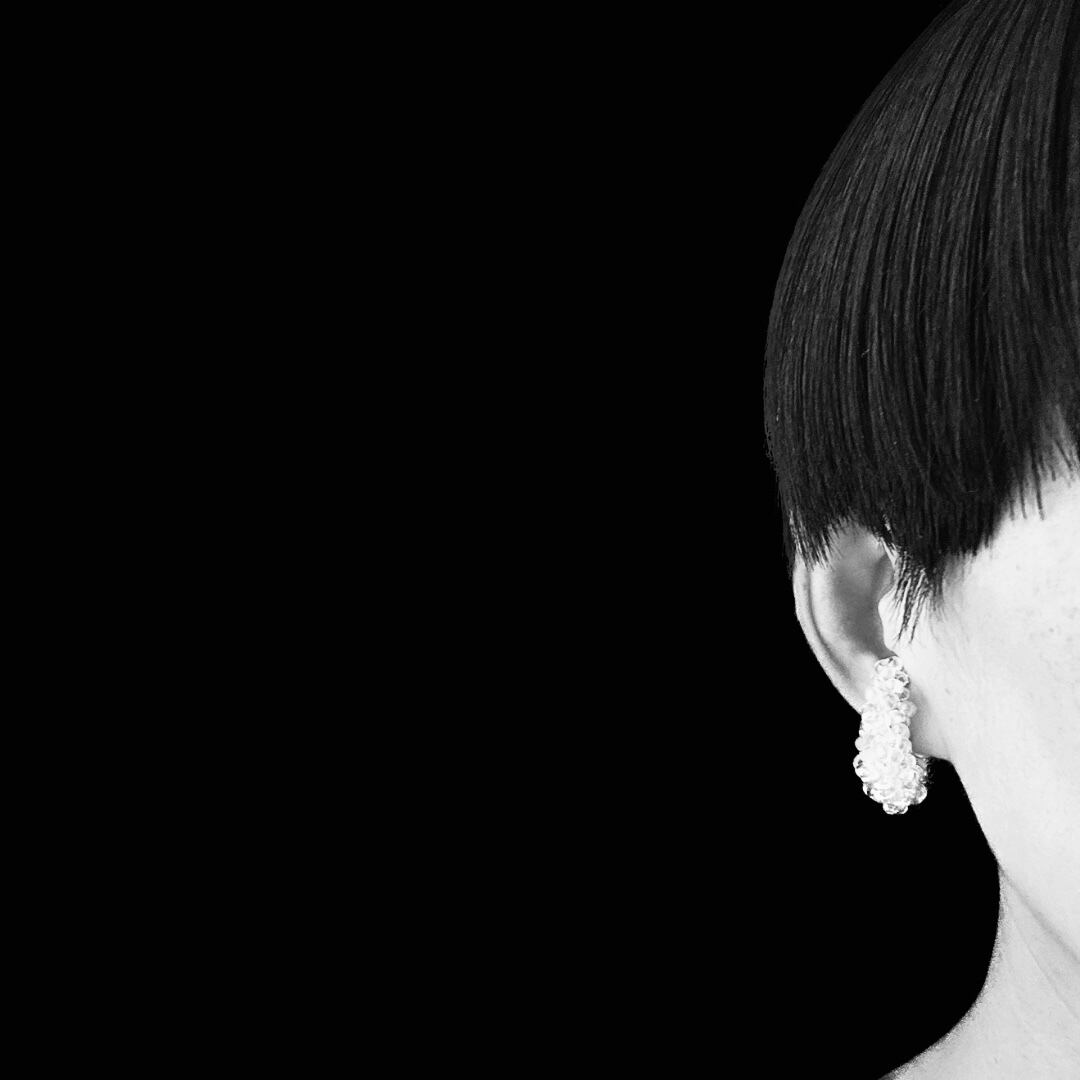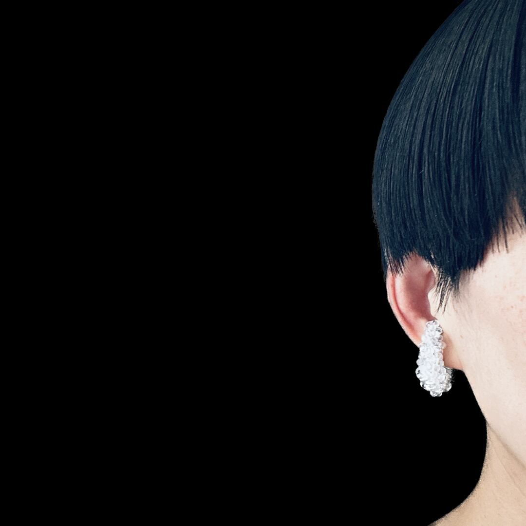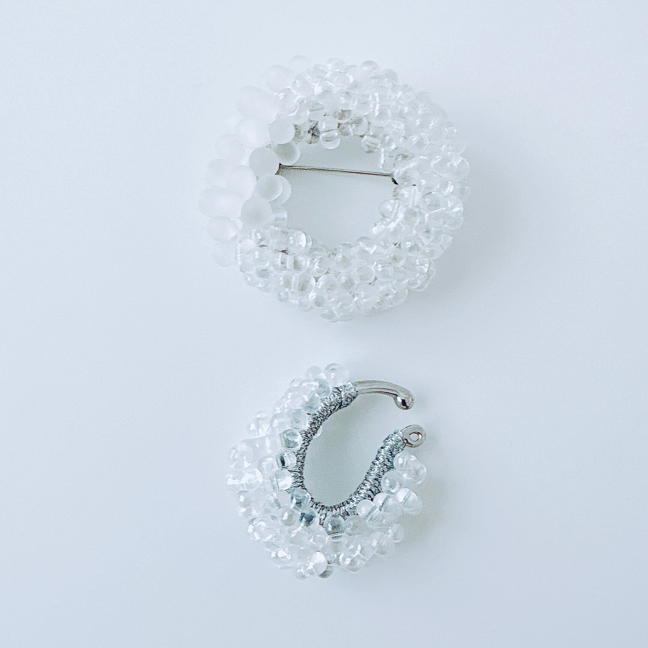 ガラスビーズ刺繍イヤーカフ 透明白ドット — クリアな透明感のつぶつぶ|ミニマルハンドメイド|くく couture #49