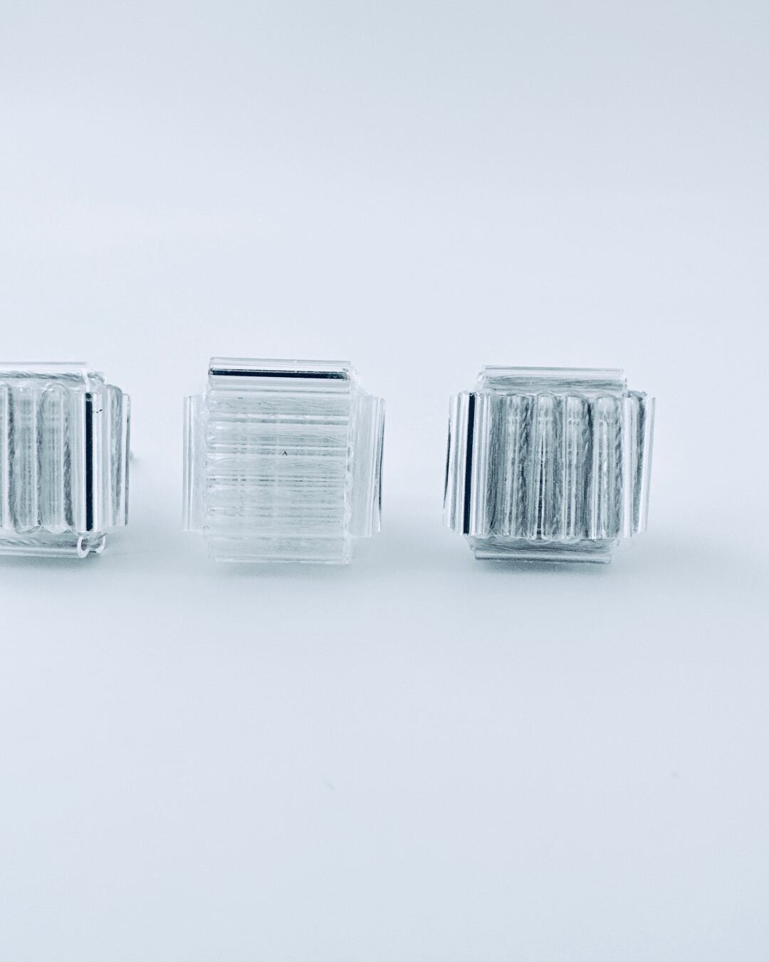 チェック柄グレーガラスビーズ刺繍イヤリング3点セット /ピアス【受注製作】#54