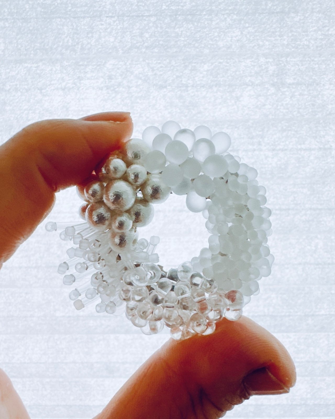 ・ガラスビーズの透明感はスタイリングにすっと馴染む